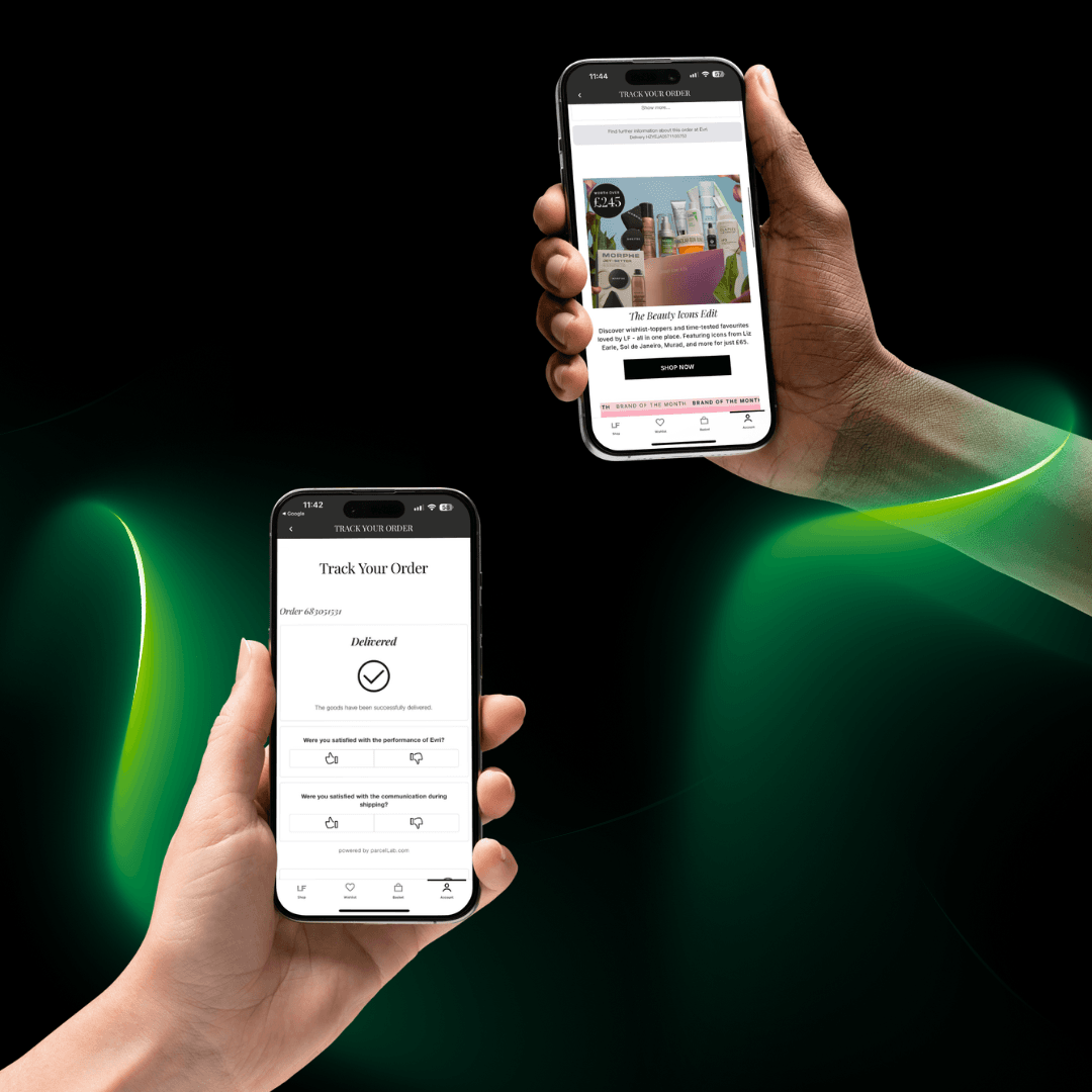 Branded delivery and order tracking updates keep customers informed from dispatch to delivery through on-site and in-app touchpoints. By directing delivery tracking traffic back to your brand instead of courier pages, they create additional marketing opportunities while reducing “Where is my order?” (WISMO) enquiries.